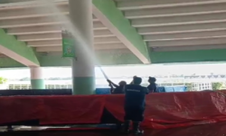 SANTO DOMINGO ESTE.- Con el apoyo del Cuerpo de Bomberos de Santo Domingo Este, la administración del Hipódromo Quinto Centenario realiza labores de ornato y limpieza en el parque hípico. A tales fines, se realizan labores de lavado con agua a presión de pisos y paredes. También se pintan las paredes de las áreas exteriores e interiores de la instalación. De esa manera, el parque hípico está comenzando a lucir reluciente, como en los días de su inauguración, en abril de 1995, agradando a la vista de sus visitantes, y dando una satisfactoria sensación de limpieza