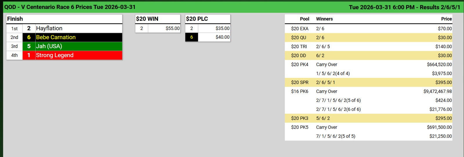 Ganadores (#2 AMOR PROPIO, #7 POWER IN RHYTHM (USA), #6 AMARA, #5 TOUCH PERFORMANCE (USA), #6 SOMBRA y #2 HAYFLATION (USA))