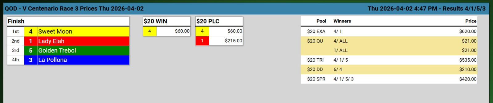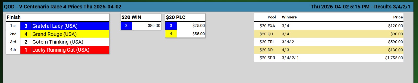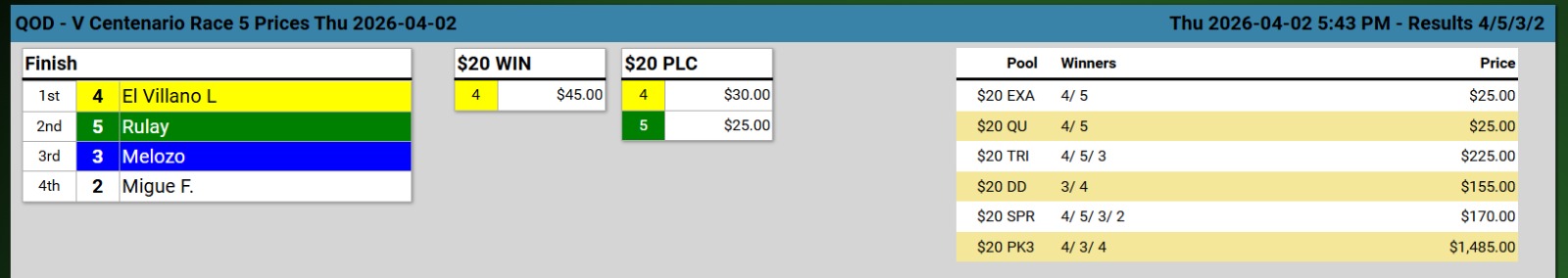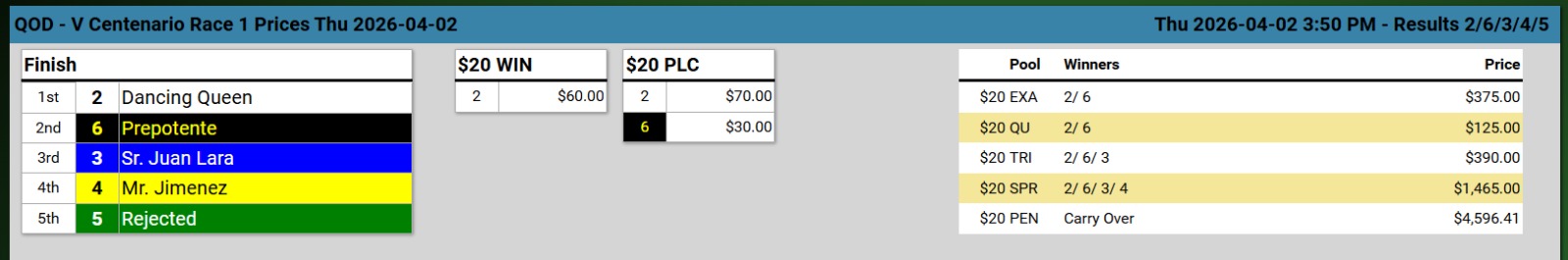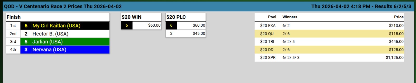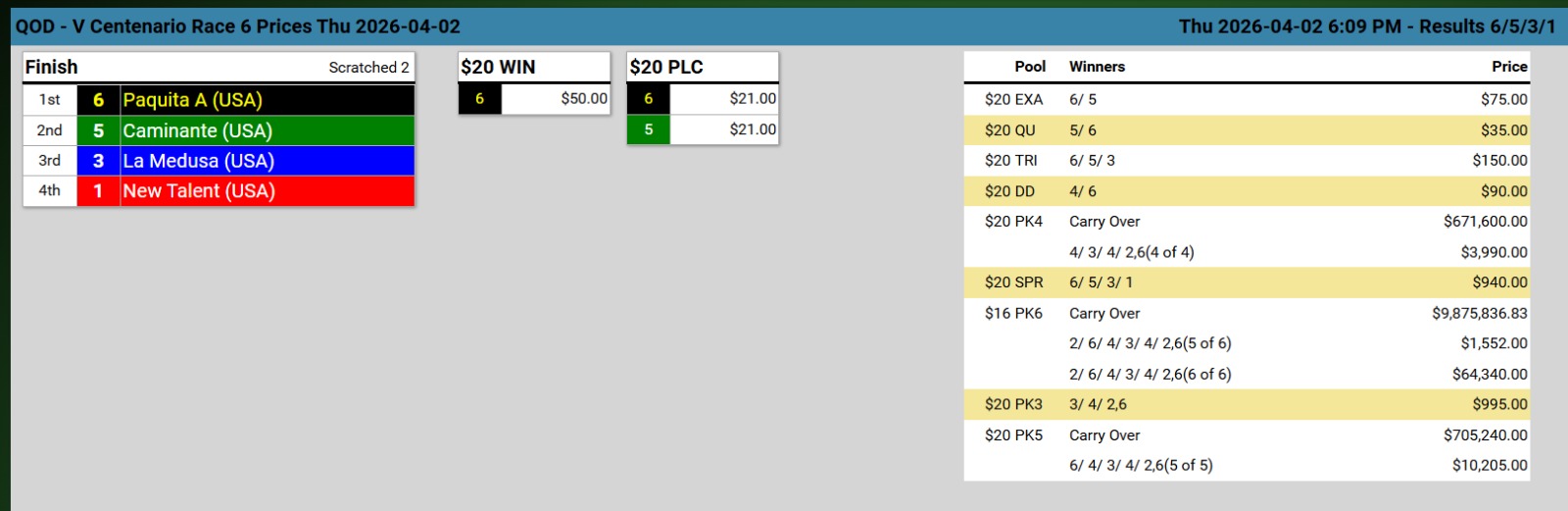 Ganadores (#2 DANCING QUEEN, #6 MY GIRL KAITLAN (USA), #4 SWEET MOON, #3 GRATE FULL LADY (USA), #4 EL VILLANO L y #6 PAQUITA A (USA))