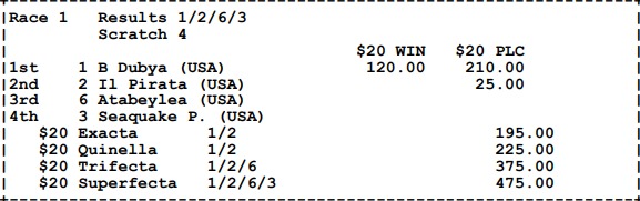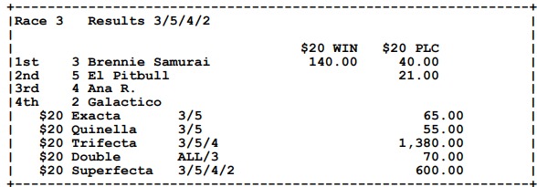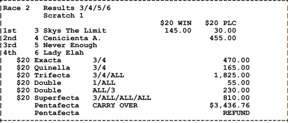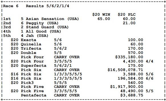 Ganadores (#1 B DUBYA (USA), #3 SKYS THE LIMIT, #3 BRENNIE SAMURAI, #5 LAUNDRY BOY (USA), #5 DON ÑAÑO CCC y #5 ASIAN SENSATION (USA))