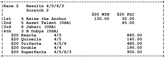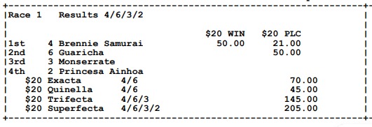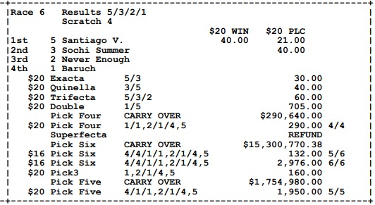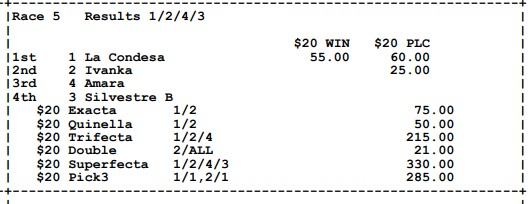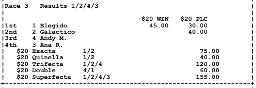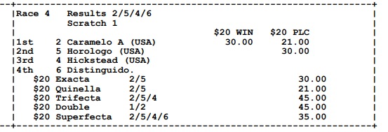 Ganadores (#4 BRENNIE SAMURAI, #4 RAISE THE ANCHOR (USA), #1 ELEGIDO, #2 CARAMELO A (USA), #1 LA CONDESA y #5 SANTIAGO V.)