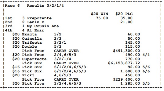 Ganadores (#6 PEGGITY (USA), #1 SAY WHEN SAMMY (USA), #2 DON CHICHO P, #4 ISABELA B, #5 HOROLOGO USA y #3 PREPOTENTE)