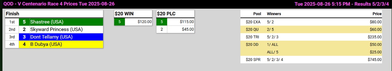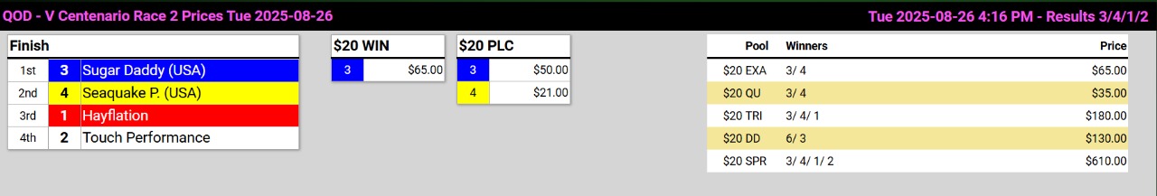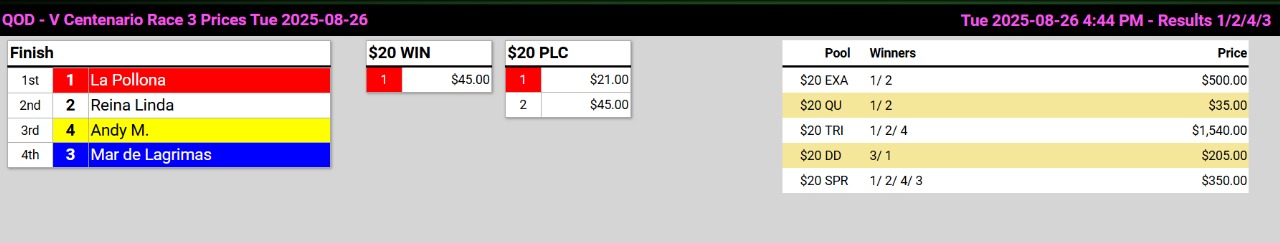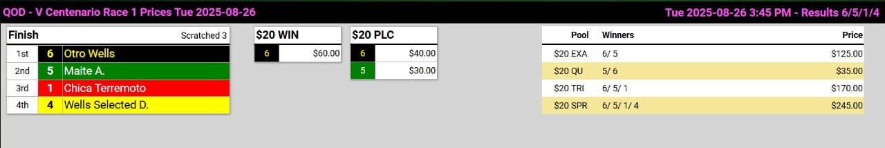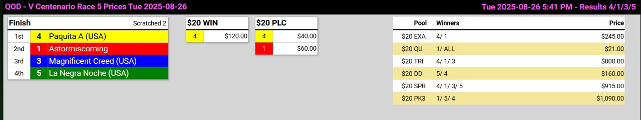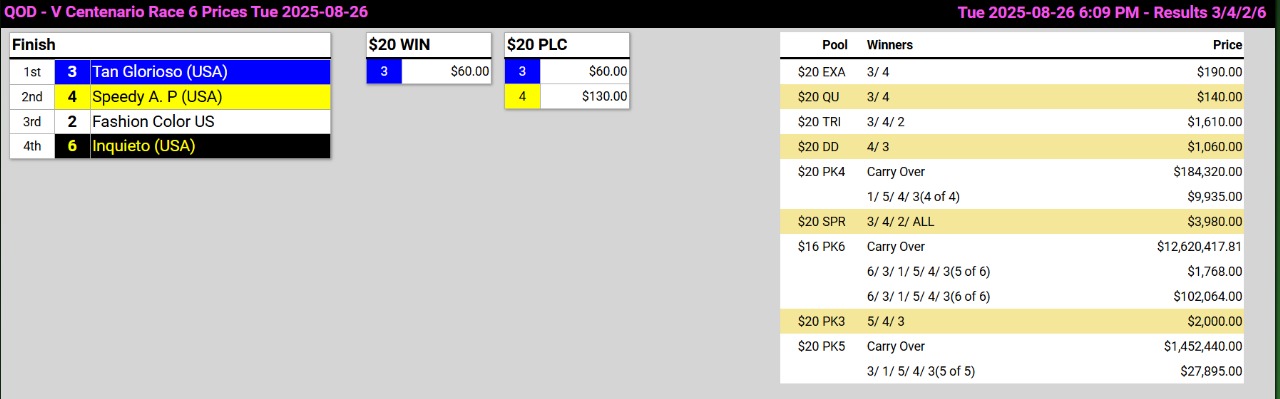 Ganadores (#6 OTRO WELLS, #3 SUGAR DADDY (USA) , #1 LA POLLONA, #5 SHASTREE (USA), #4 PAQUITA A (USA) y #3 TAN GLORIOSO (USA))