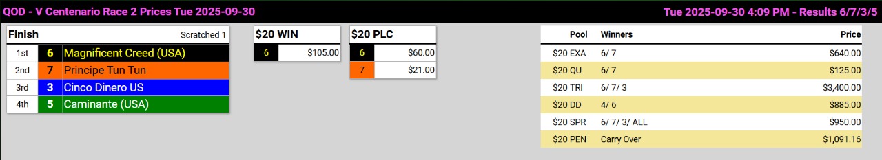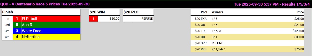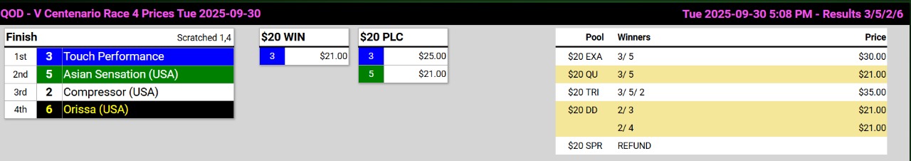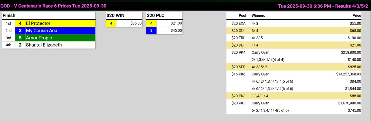 Ganadores (#4 CHICA TERREMOTO, #6 MAGNIFICENT CREED (USA), #2 OTRO WELLS, #3 TOUCH PERFORMANCE (USA), #1 EL PITBULL y #4 EL PROTECTOR )
