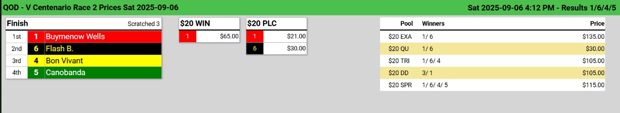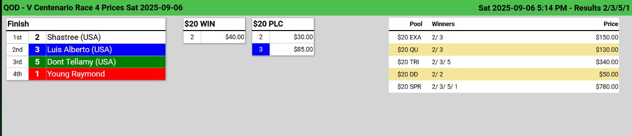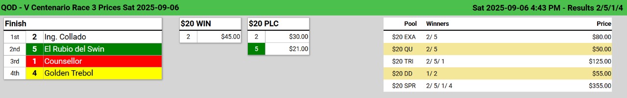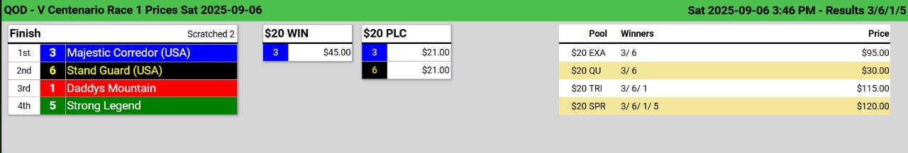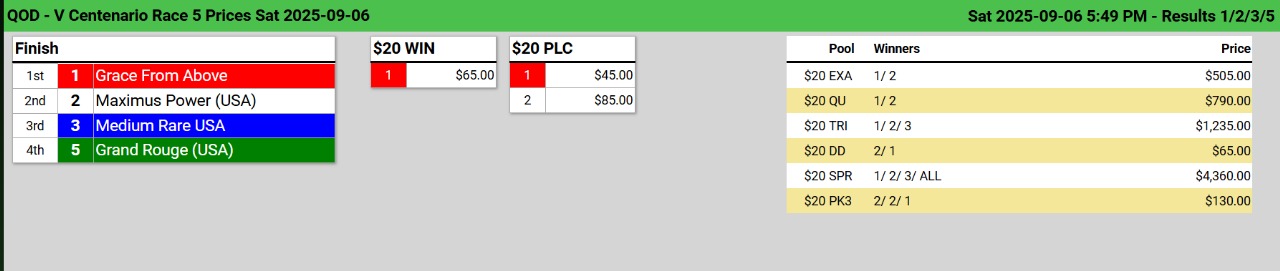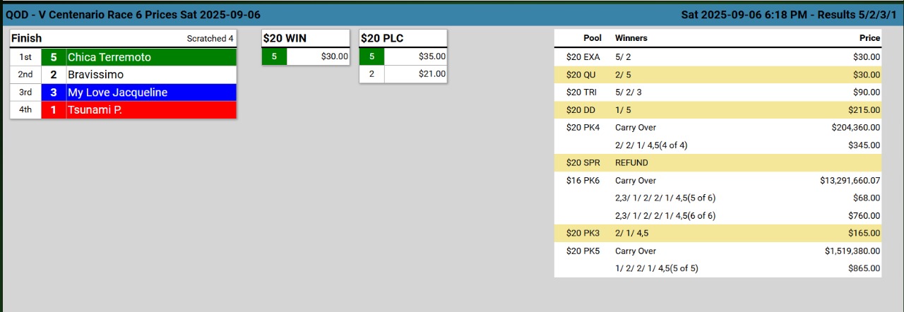 Ganadores (#3 MAJESTIC CORREDOR (USA), #1 BUYMENOW WELLS, #2 ING. COLLADO, #2 SHASTREE (USA), #1 GRACE FROM ABOVE (USA) y #5 CHICA TERREMOTO)