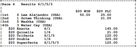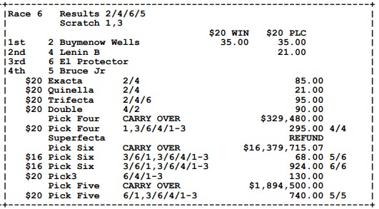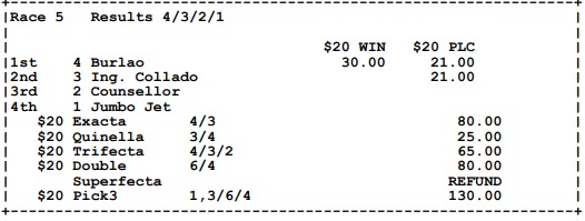 Ganadores (#3 HOROLOGO (USA), #6 HEROE B. (USA), #1 SANTIAGO V., #6 LEE ALEJANDRO (USA), #4 BURLAO y #2 BUYME NOW WELLS)