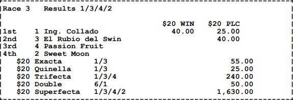 1200 Metros. Nativos 3 años y mayores, Reclamo RD$200,000.00. Ganadores de 1 y 2 primeras. |