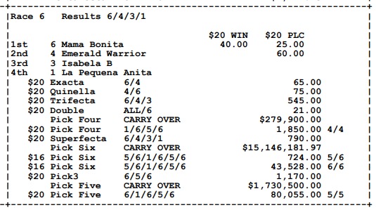 Ganadores (#5 CONIGLIETA (USA), #6 FLASH B., #1 ING. COLLADO, #6 GOTEM THINKING (USA) , #5 KOREAN´S GIRL y #6 MAMA BONITA)