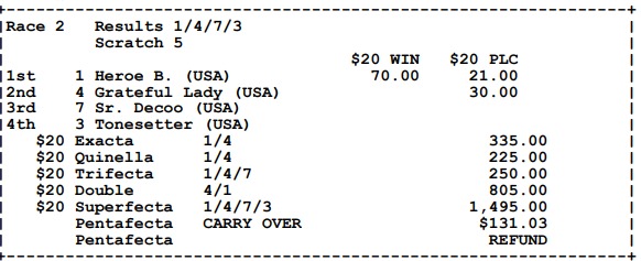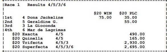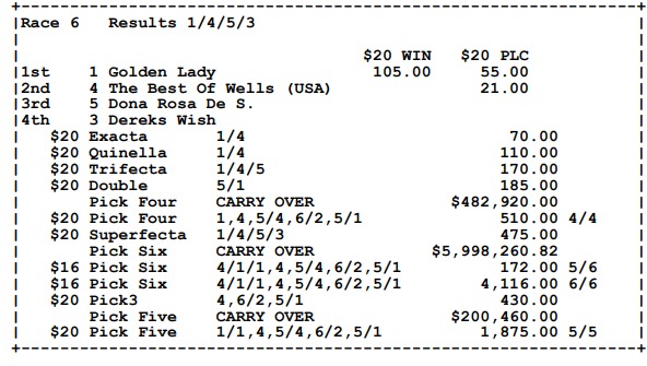 Ganadores (#4 DOÑA JACKELINE, #2 HEROE B. (USA), #1 ONE WELLS MORE, #6 GRAND ROUGE (USA), #5 ING. COLLADO y #1 GOLDEN LADY)