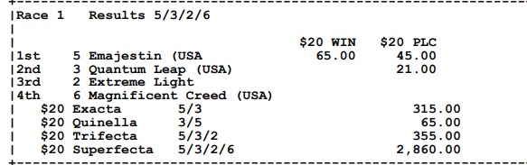 Ganadores (#5 EMAJESTIN (USA), #6 MY BIG FANS WELLS, #2 LA FORTUNADA, #5 SR. DECOO (USA), #1 EL GRINGO A. y #5 MAR DE LAGRIMAS)