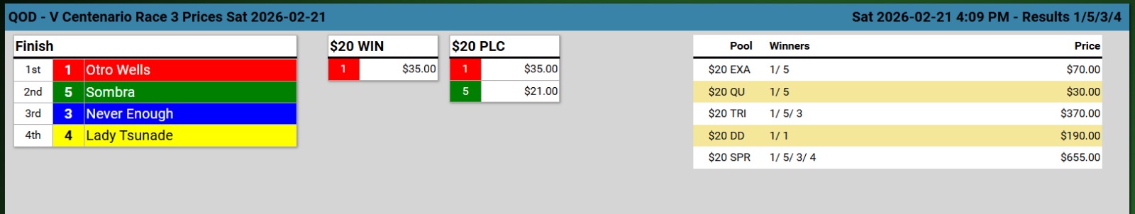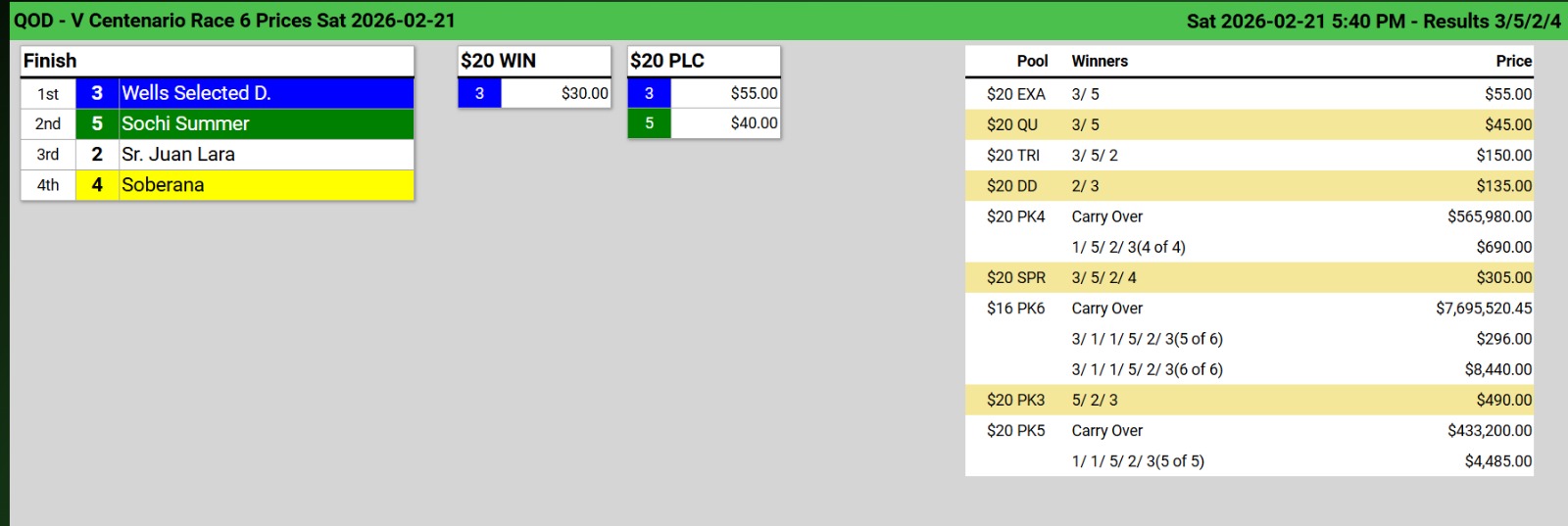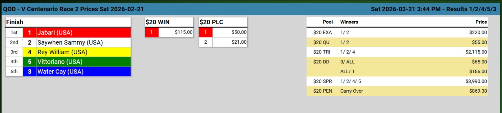 Ganadores (#3 JAH (USA), #1 JABARI (USA), #1 OTRO WELLS, #5 GOLDEN TREBOL, #2 HIGHER ORBIT y #3 WELL SELECTED D.)