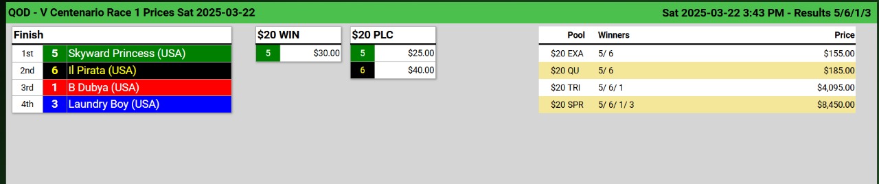 Ganadores (#5 SKYWARD PRINCESS (USA), #6 EQINOXIO, #2 CATIRE, #5 EXTREME LIGHT (USA), #1 WICKEWELLS JLC y #1 OUR FLORIDA WELLS)