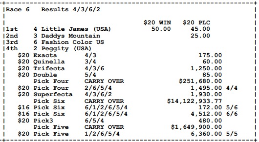 Ganadores (#6 SHASTREE (USA), #1 SWEET MOON, #2 LUIGINO (USA), #6 GEM CAT (USA), #5 OMAHA CANDY y #4 LITTLE JAMES (USA))