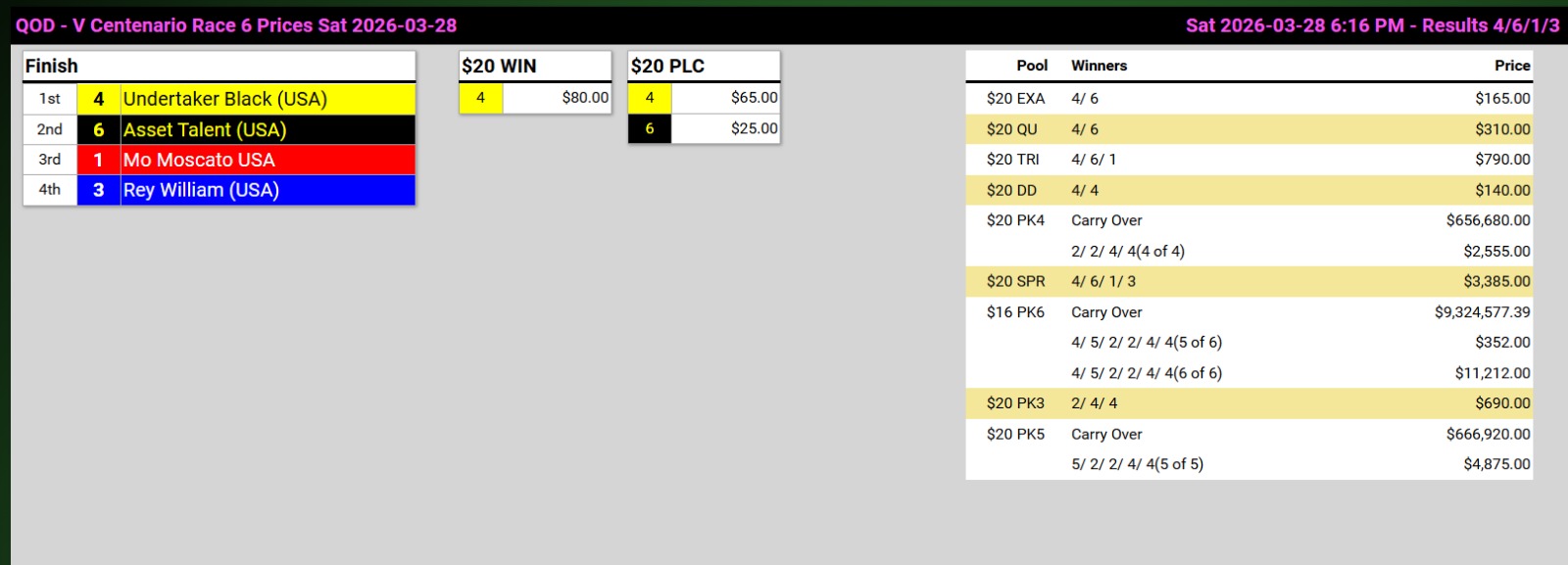 Ganadores (#4 ATABEY LEA (USA), #5 BETTERING (USA), #2 SKY´S THE LIMIT, #2 PASSION FRUIT, #4 KOREAN’S GIRL y #4 UNDER TAKER BLACK (USA))